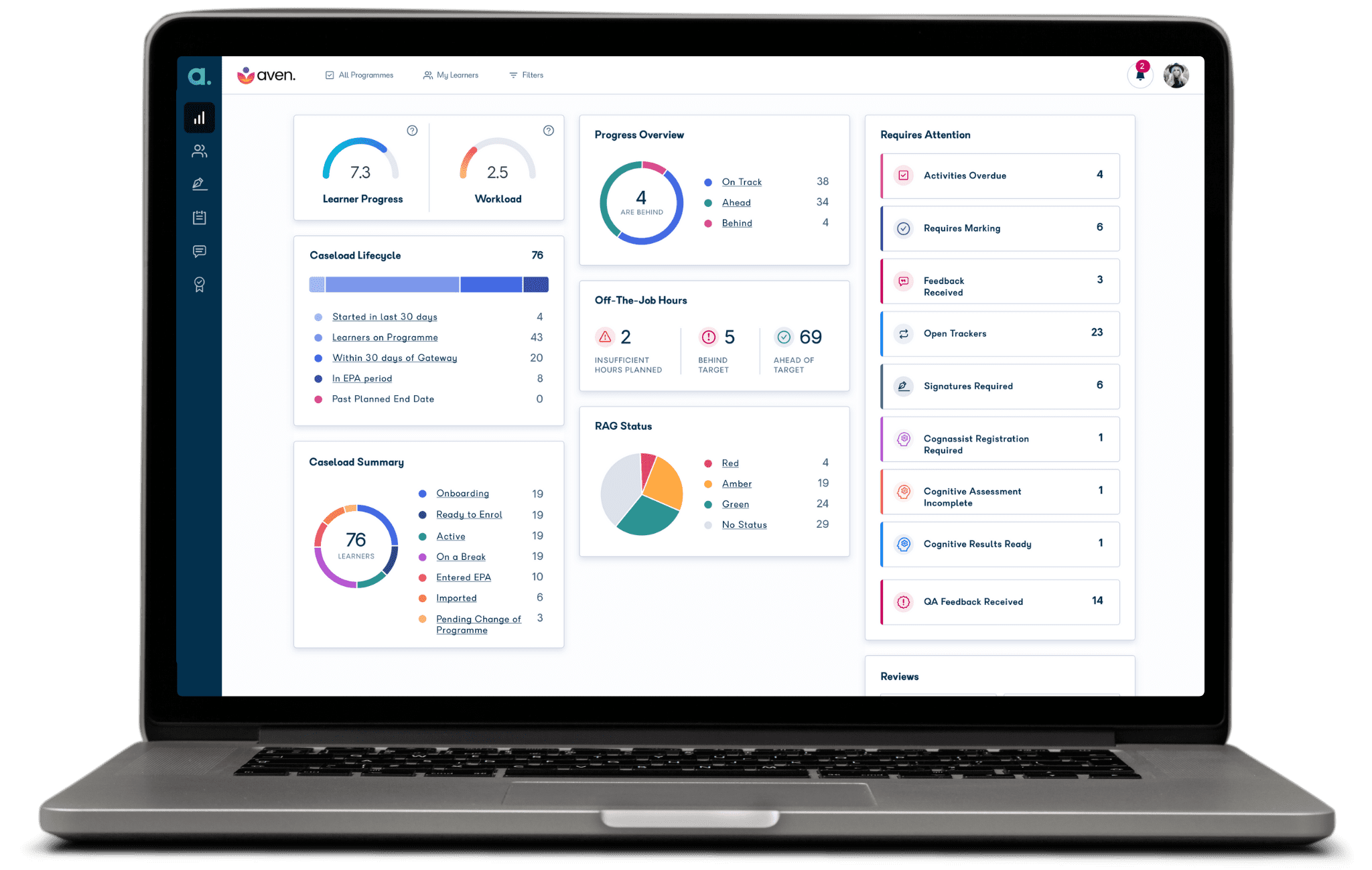 See completed and outstanding tasks in real time as your apprentice works through the programme.