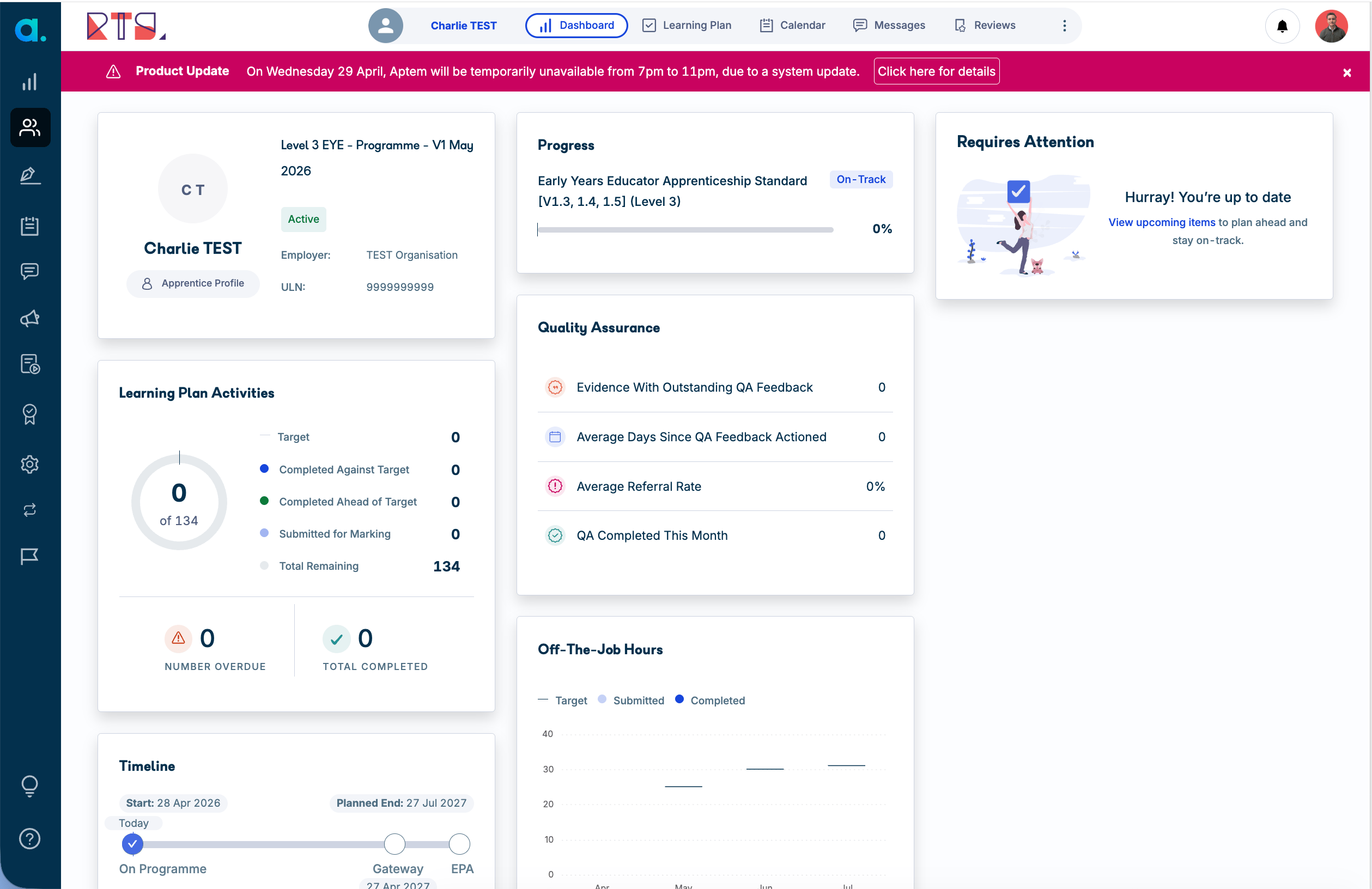 Aptem is your online apprenticeship management platform. It's where you access your learning plan, complete tasks, upload evidence, log your off-the-job training hours, and stay in touch with your Skills Coach. Everything you need is in one place.